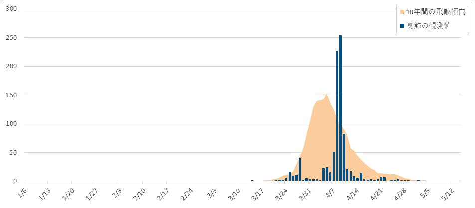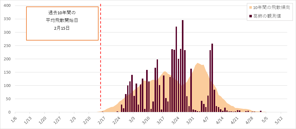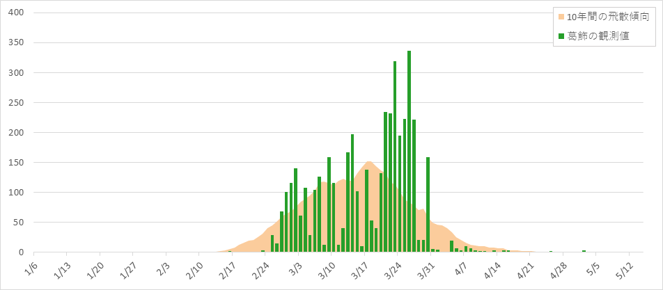 トップページ > 東京都の花粉情報 > 過去の飛散花粉数データ > 令和7年地点毎の花粉飛散状況:葛飾 令和7年地点毎の花粉飛散状況:葛飾 区部 千代田 葛飾 杉並 北 大田 多摩地区 青梅 八王子 多摩 町田 立川 府中 小平 12地点の合計 測定地点:葛飾 スギ・ヒノキ花粉の合計の飛散状況(個/cm2) 飛散花粉数データ:スギ・ヒノキ合計 スギ花粉の飛散状況(個/cm2) 飛散花粉数データ:スギ ヒノキ花粉の飛散状況(個/cm2) 飛散花粉数データ:ヒノキ