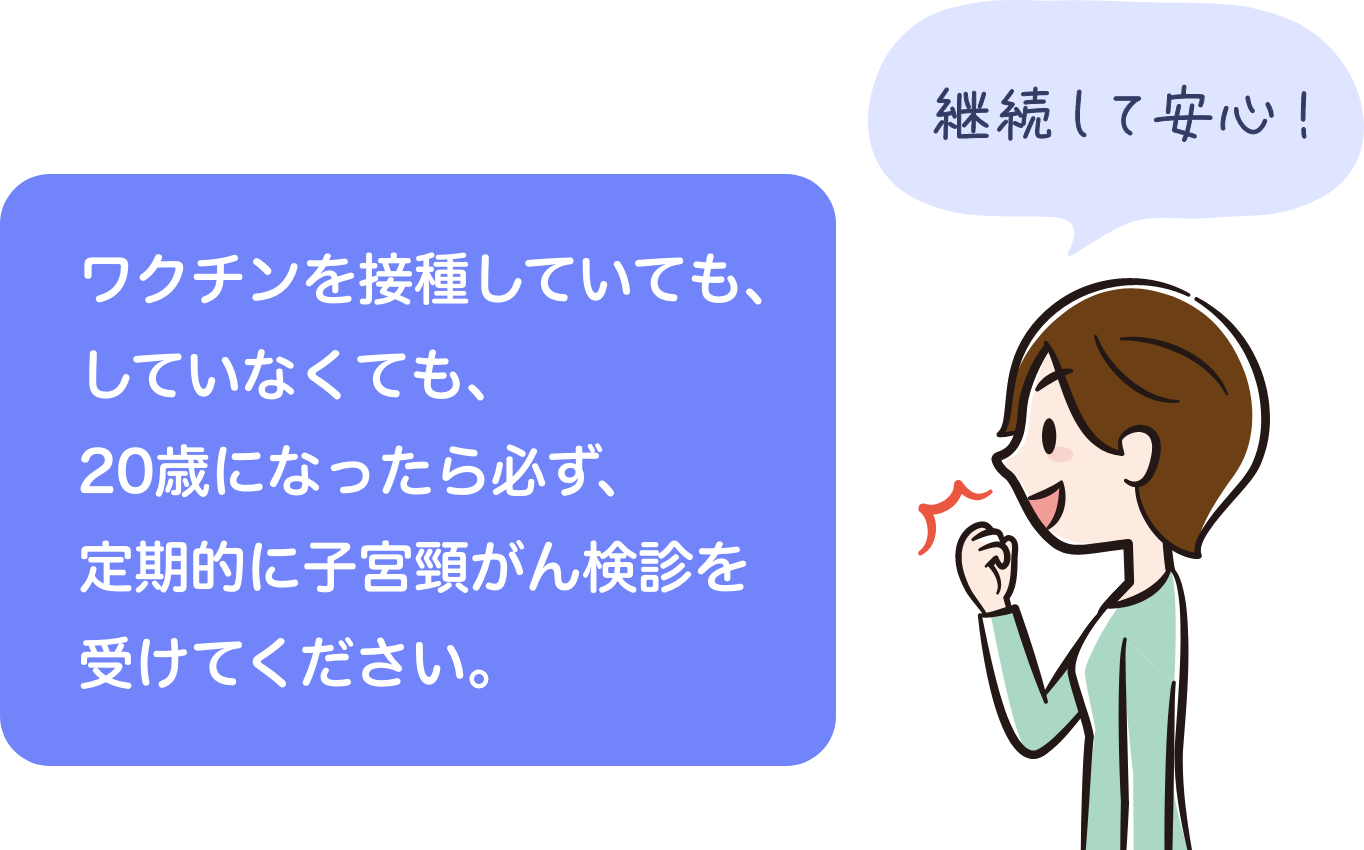 20歳になったら、子宮頸がんを早期発見するため、子宮頸がん検診を定期的に受けることが重要です※。
