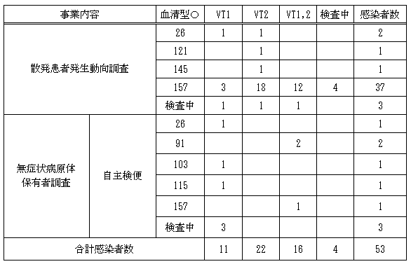 ※8月中旬、1名の散発患者からO157(VT2)及び(VT1,2)が検出されたため、累計数が1名多く なっている。