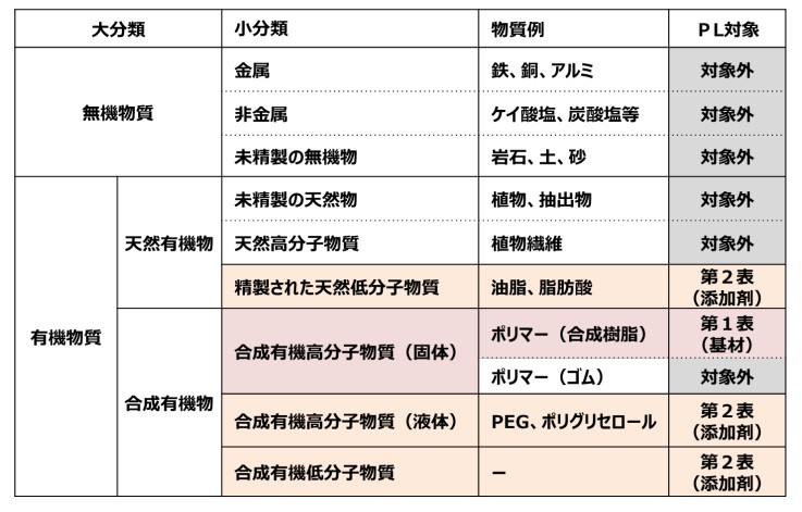 - 基材の物理的又は化学的性質を変化させ、最終製品中に化学反応せず残存することを意図して用いられる有機低分子物質等(添加剤)