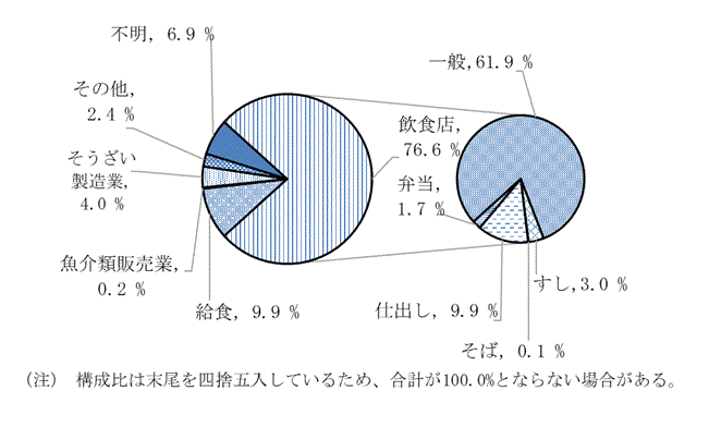 | 不明 | 1 | 14 | 0.7 | 1.1 | 飲食店の食事 | ||